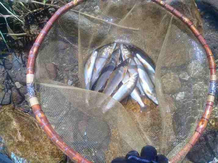 9/10日手取川中流部に入りました。9時30分に入り11時30分の雨まで16〜20pが11匹でした。画像なし 9/9日大日川に入りましたが23p1匹釣れたが後が続かず、手取川中流部に移動しました。パタパタと10匹釣れたので納竿。